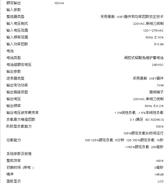 iTrust UH11系列UPS为单进单出型(单相输入,单相输出)智能高频在线式交流不间断电源系统,容量为10KVA的2种规格(包含标准机型和长延时机型),适用于小型计算机中心、网络间、通信系统、办公终端、医疗设备和精密仪器设备的交流供电。