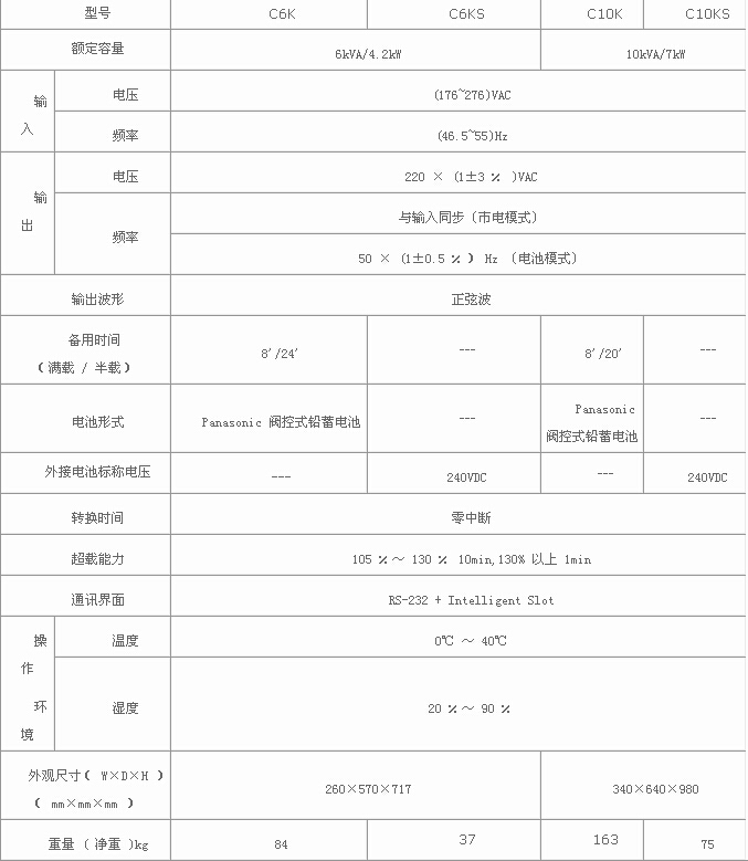 零转换时间 当市电停电或复电时,UPS 在市电模式与电池模式之间的切换是完全没有转换时间的,有效保证了负载运行的可靠性。
